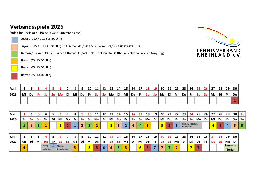Die Spieltermine für die Verbandsspiele 2026 stehen fest.→ Download Übersicht als pdf-Datei.
