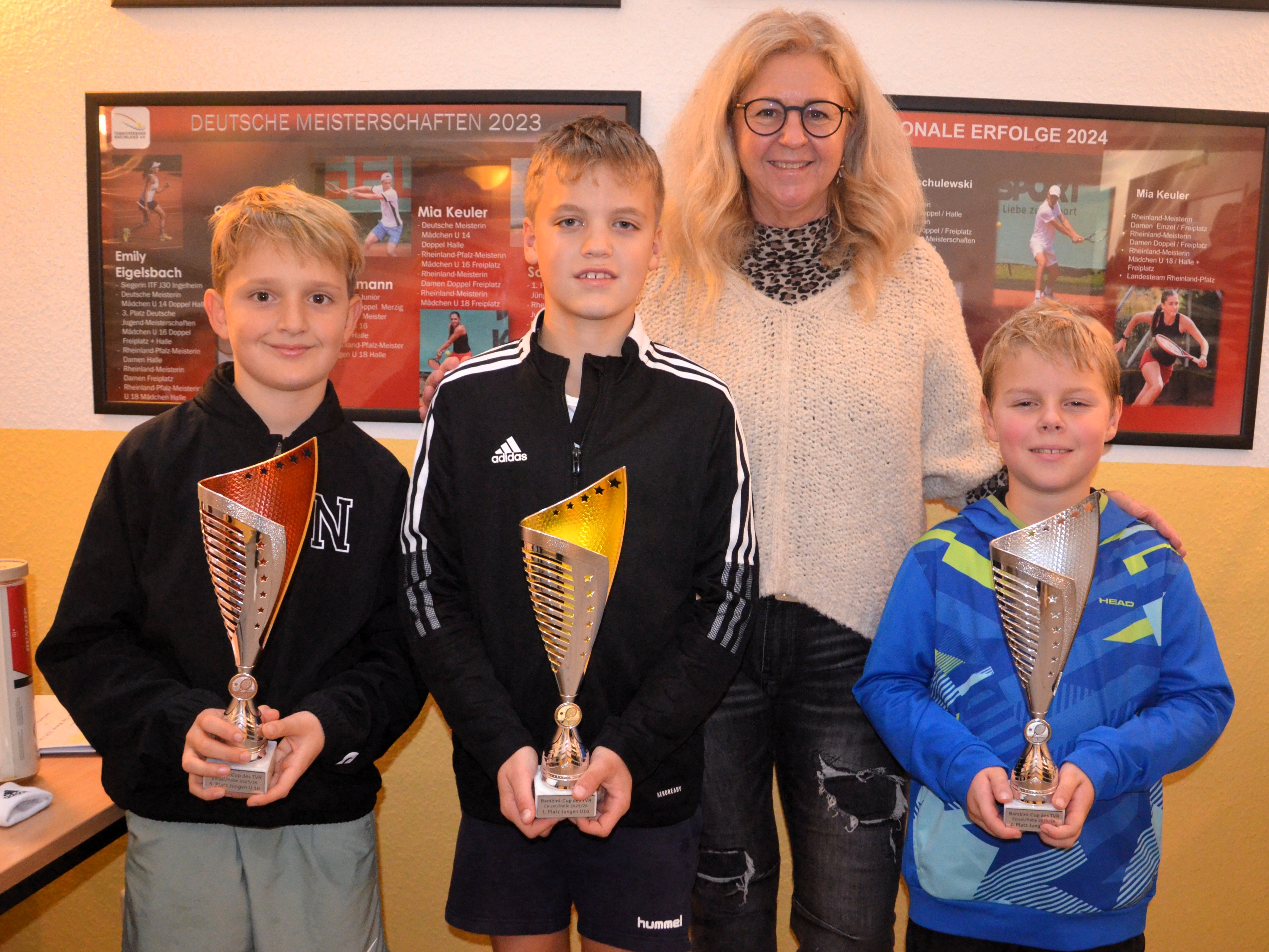 In der U10 der Jungen setzte sich mit Elias Piatek (TC Asbach) ebenfalls der topgesetzte Spieler durch. Im Endspiel traf Piatek auf Überraschungsfinalist Matteo Müller (Andernacher TC), gegen den er glatt mit 6:2 und 6:2 siegte. Bei den Mädchen U10 war Charlotte Weber (TC BW Bad Ems) die alles überragende Spielerin. In allen vier Spielen blieb sie ohne Satzverlust und holte sich auch im Endspiel souverän mit 6:4 und 6:2 gegen Linnea Stahlheber (TV Nassau) den Titel. Bei den Jüngsten (U9), wo zunächst ebenfalls aus einer Gruppe heraus gespielt wurde, gewann bei den Jungen Louis Brammer (TC Mallendarer Berg) im Finale mit 6:3 und 6:2 gegen Mats Thoma (TV Westerburg), während bei den Mädchen, bei denen ausschließlich eine Gruppenphase gespielt wurde, sich Amelie Fischer (SV Forst) mit vier Siegen und ohne Satzverlust vor Ava Bleffert (SV Altenahr) durchsetzen konnte.